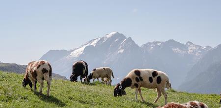 Le pecore pezzate appartengono alla famiglia delle pecore di montagna e si trovano particolarmente bene sui nostri pascoli d’alta quota. La loro vita naturale all’aria aperta garantisce una carne di agnello aromatica e di alta qualità, che utilizziamo nella nostra cucina.